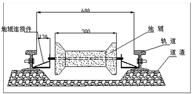 二、整改措施 從改變固定地輥的木質(zhì)框架入手,對地輥框架進(jìn)行革新,將木質(zhì)框架改為不易腐蝕、穩(wěn)定性強(qiáng)的3mm厚、60mm寬的鋼板。考慮到木質(zhì)框架固定在道木上的不穩(wěn)定性,將鋼板加工的地輥框 架固定在軌道上。綜合以上因素,技術(shù)革新后的地輥框架為型,地輥框架兩臂上各打一個(gè)孔,一端固定地輥,另一端用螺絲與軌道固定在一起(見附圖)